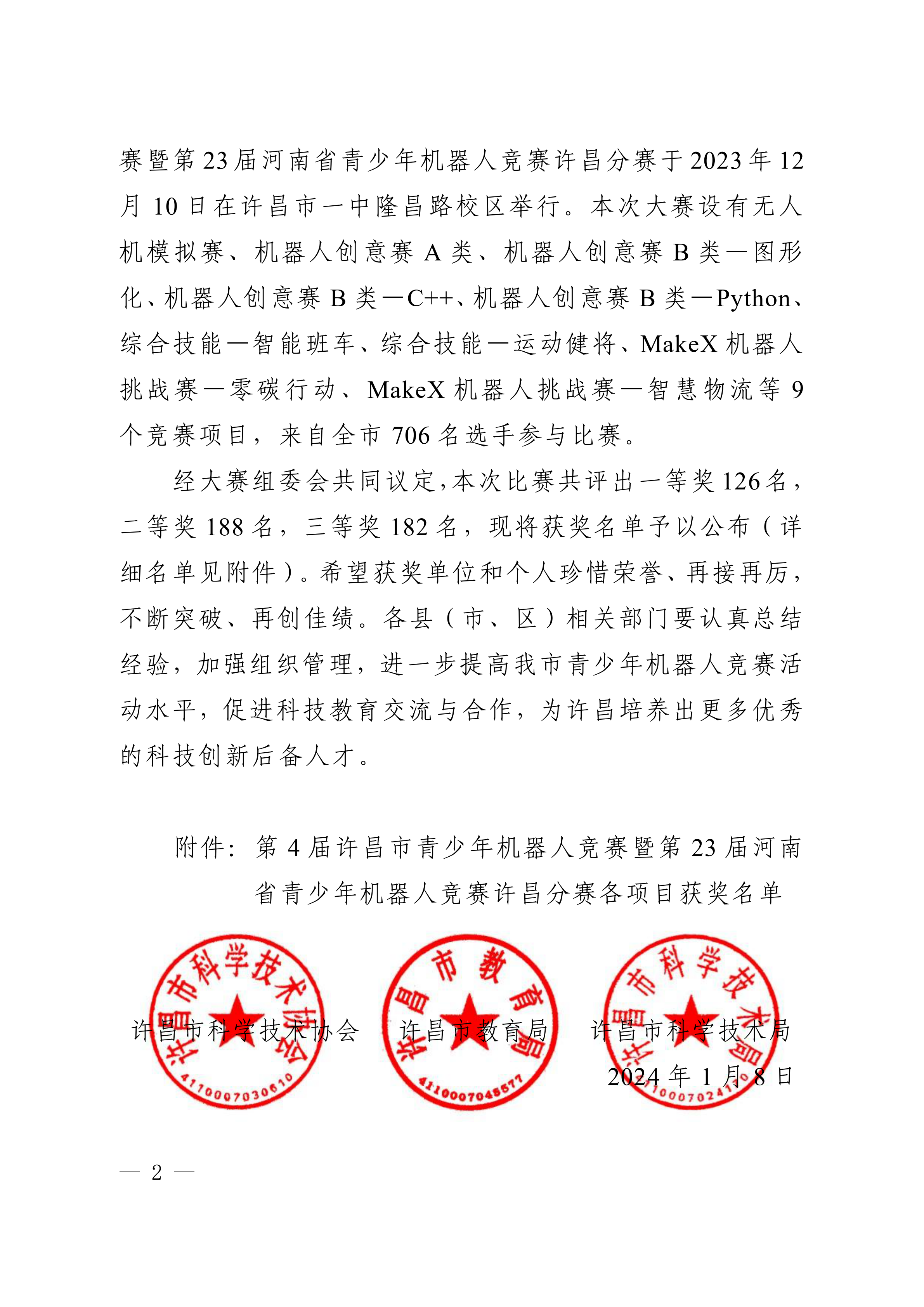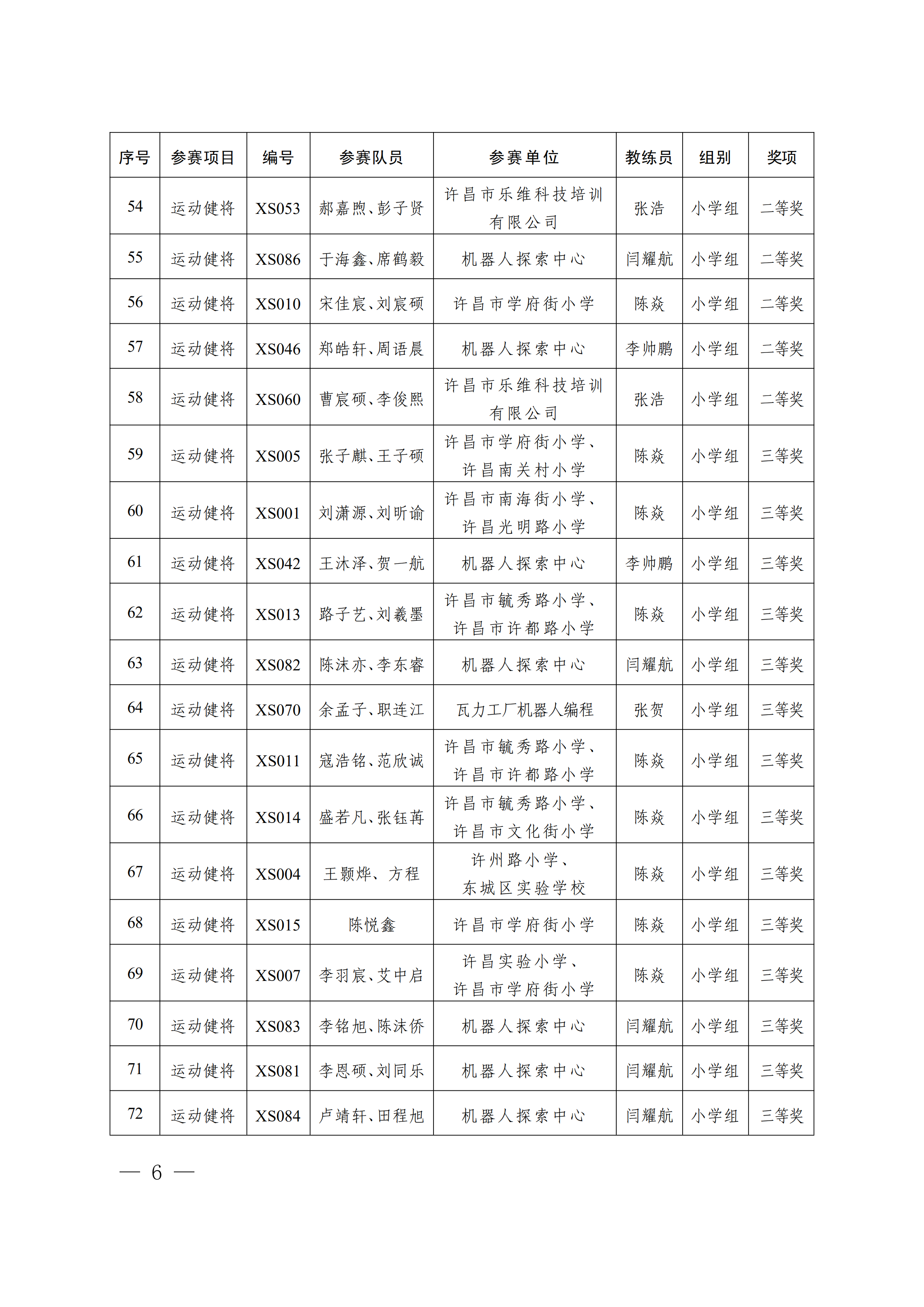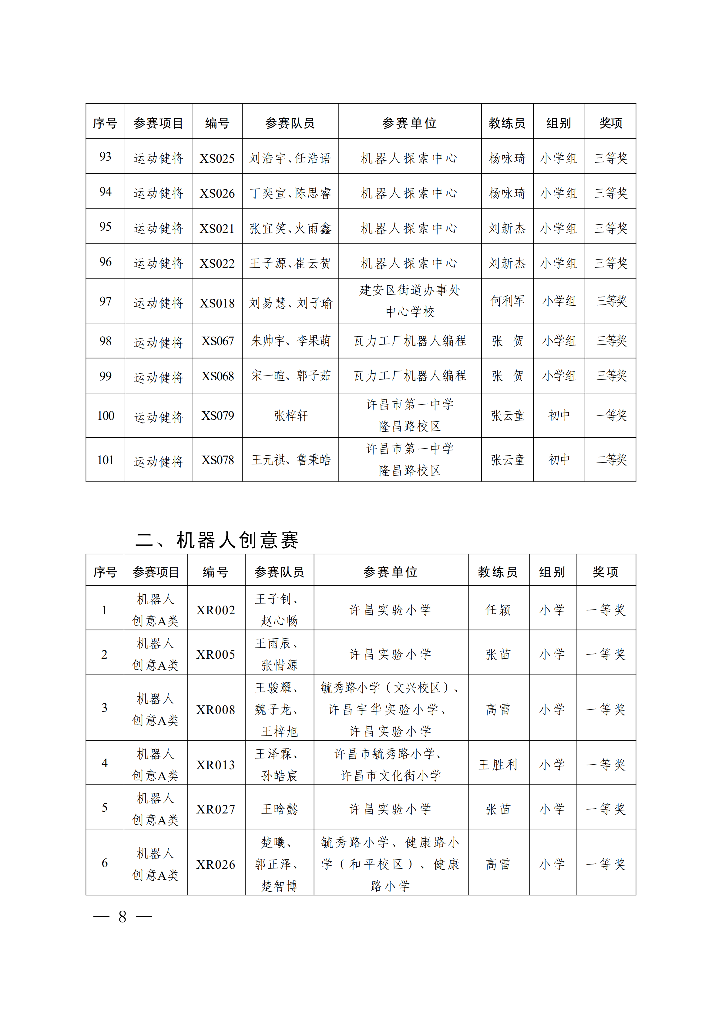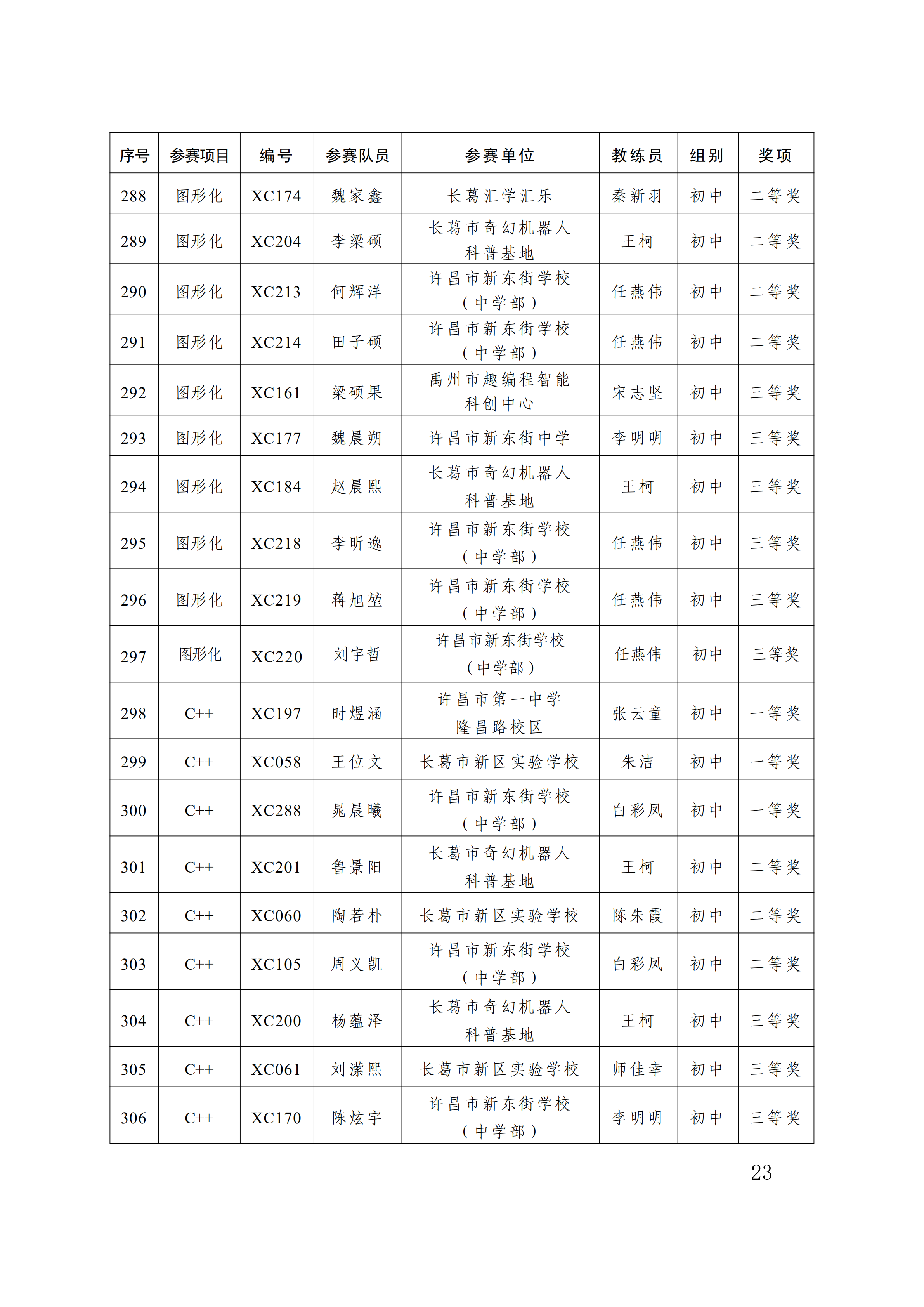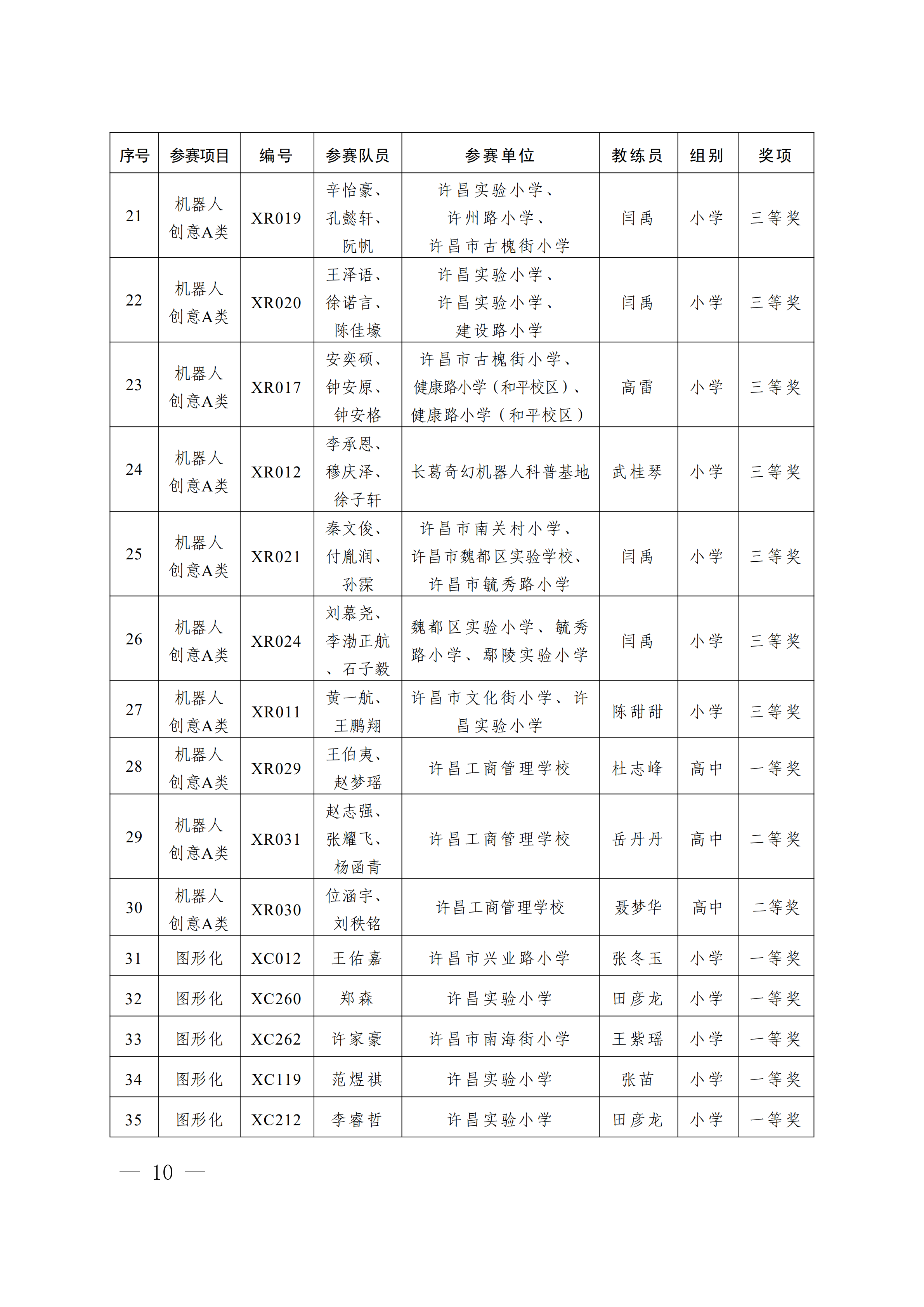 关于公布第4届许昌青少年机器人竞赛暨第23届河南省青少年机器人竞赛许昌分赛获奖名单的通知