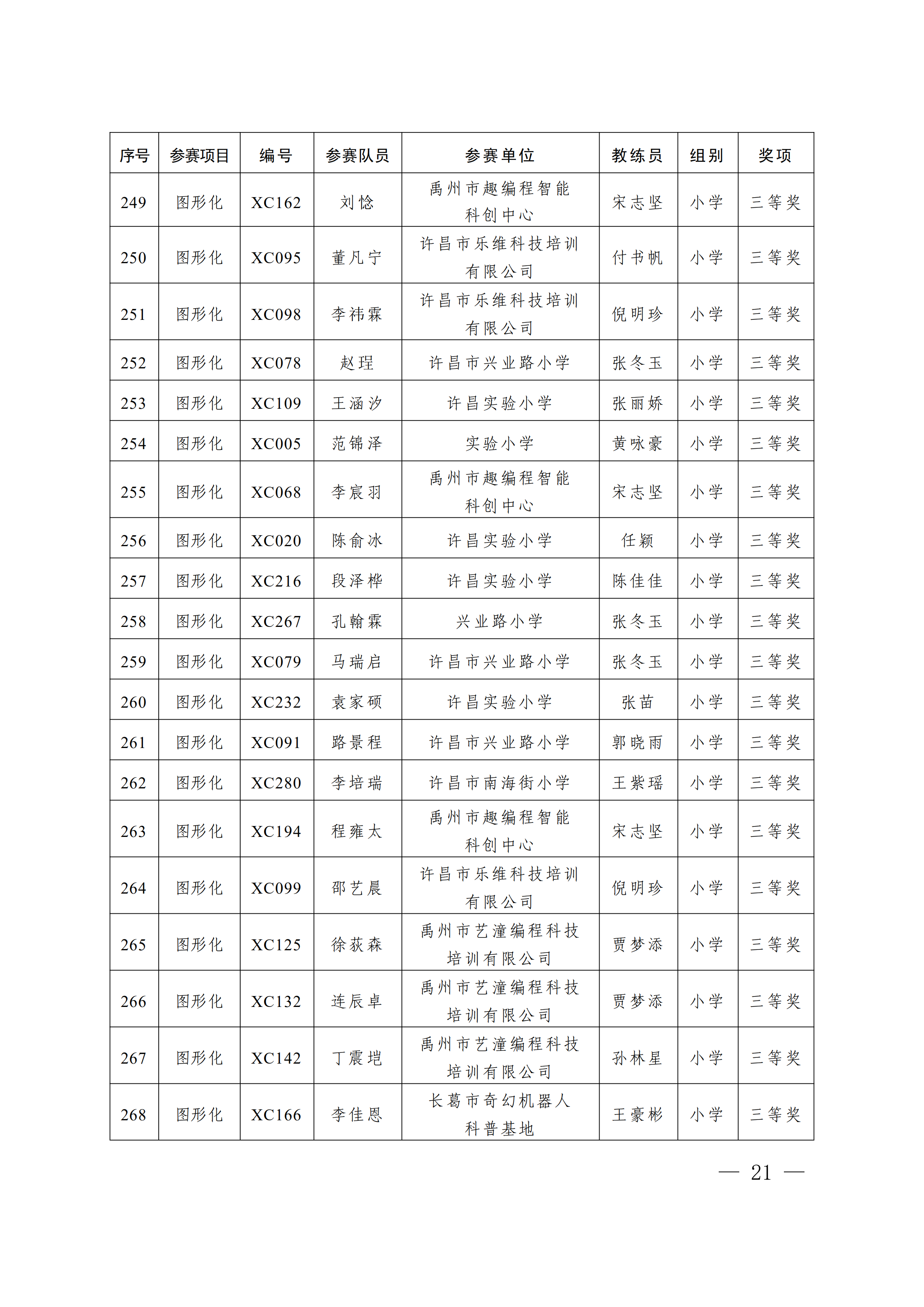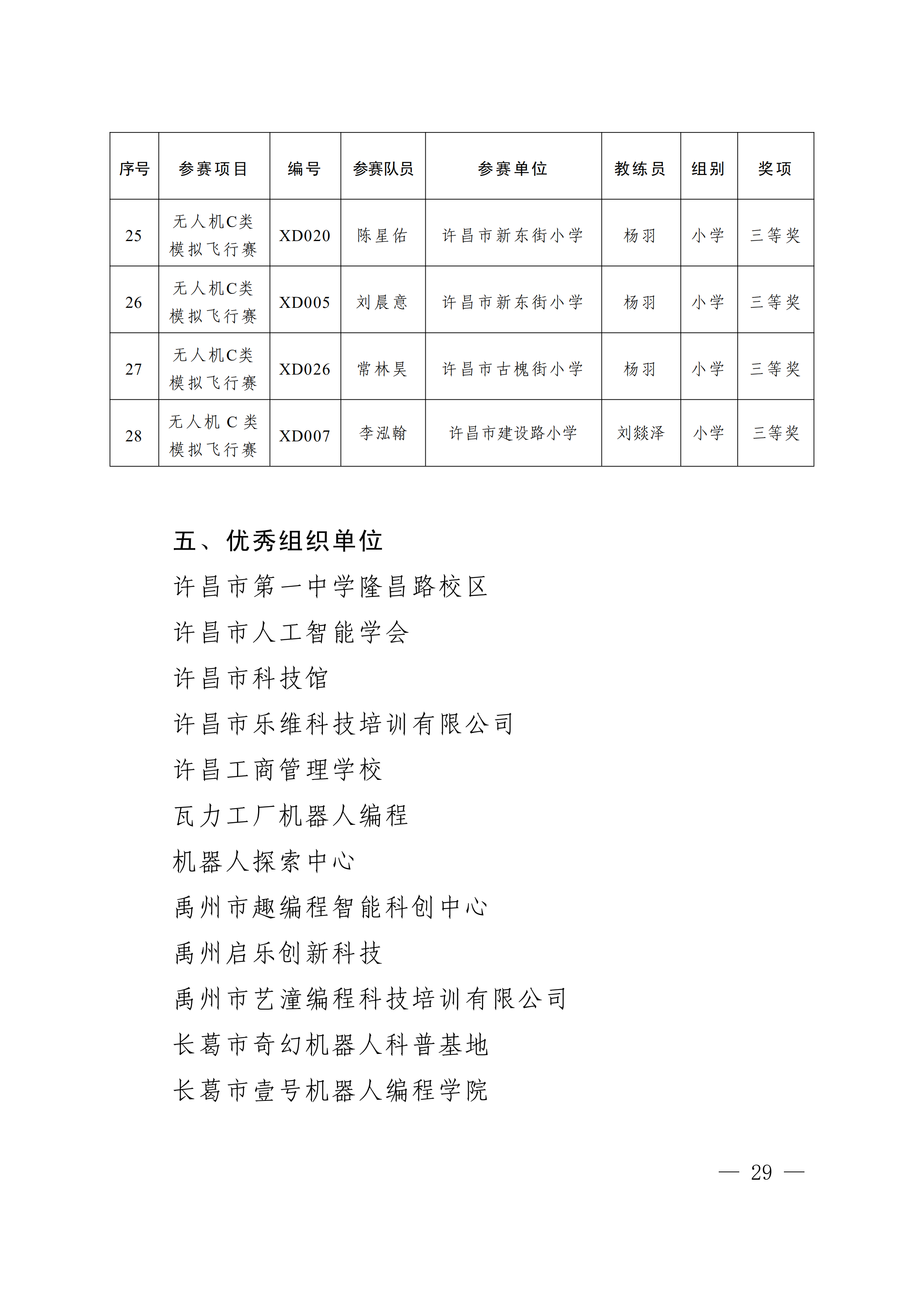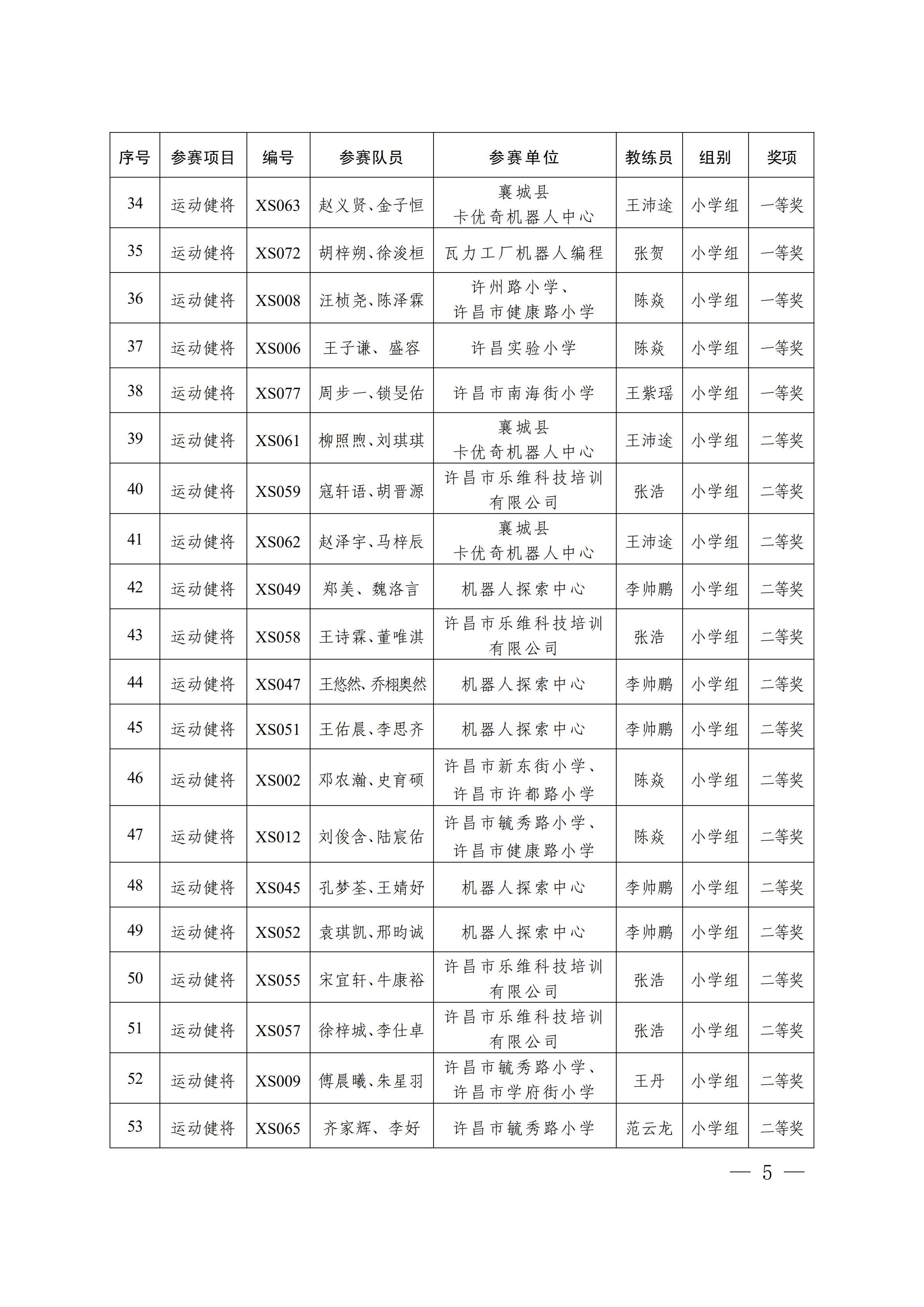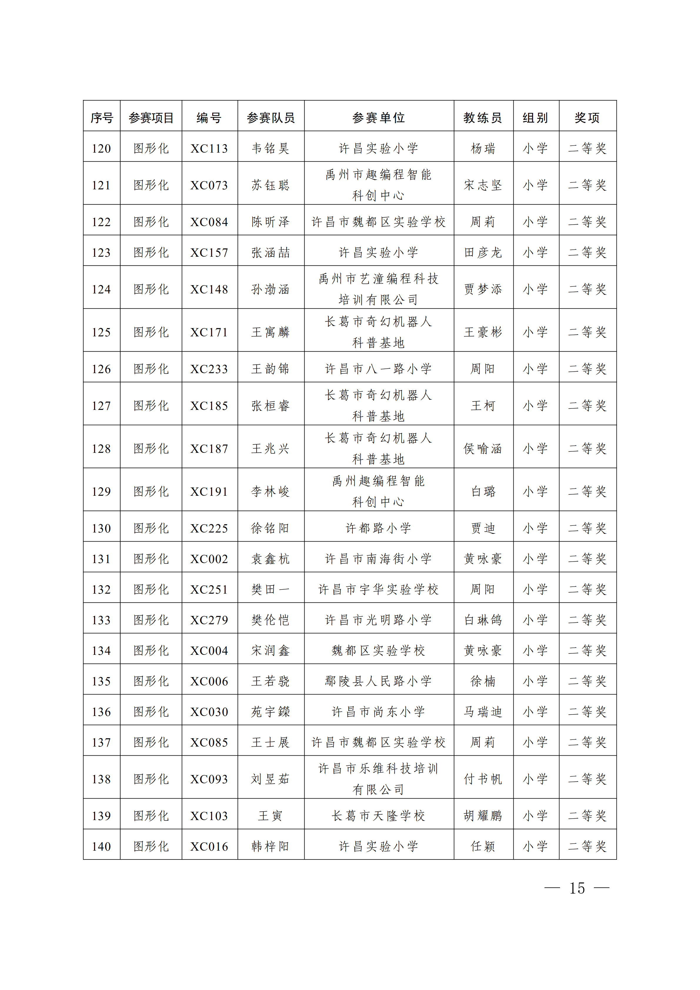 关于公布第4届许昌青少年机器人竞赛暨第23届河南省青少年机器人竞赛许昌分赛获奖名单的通知