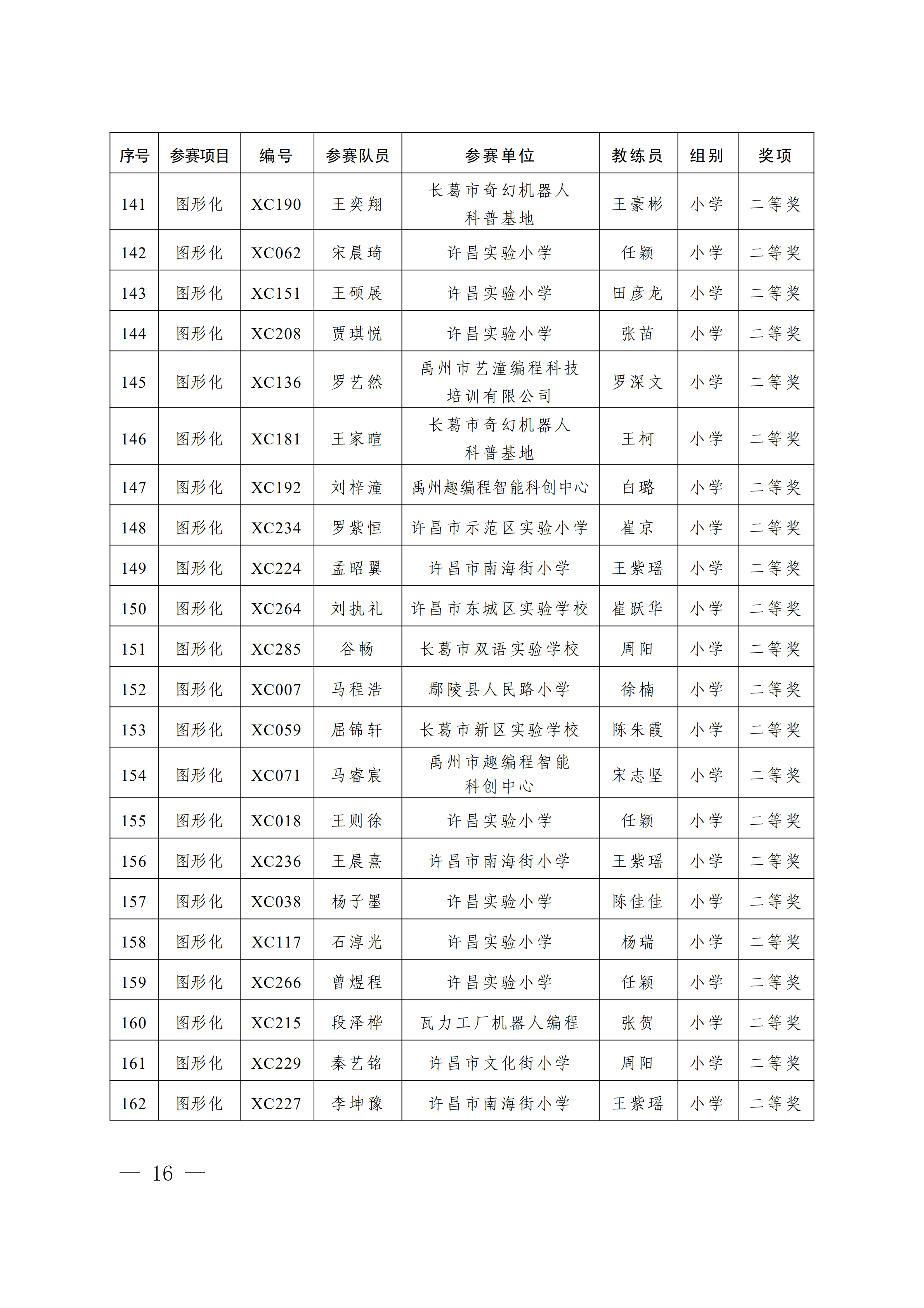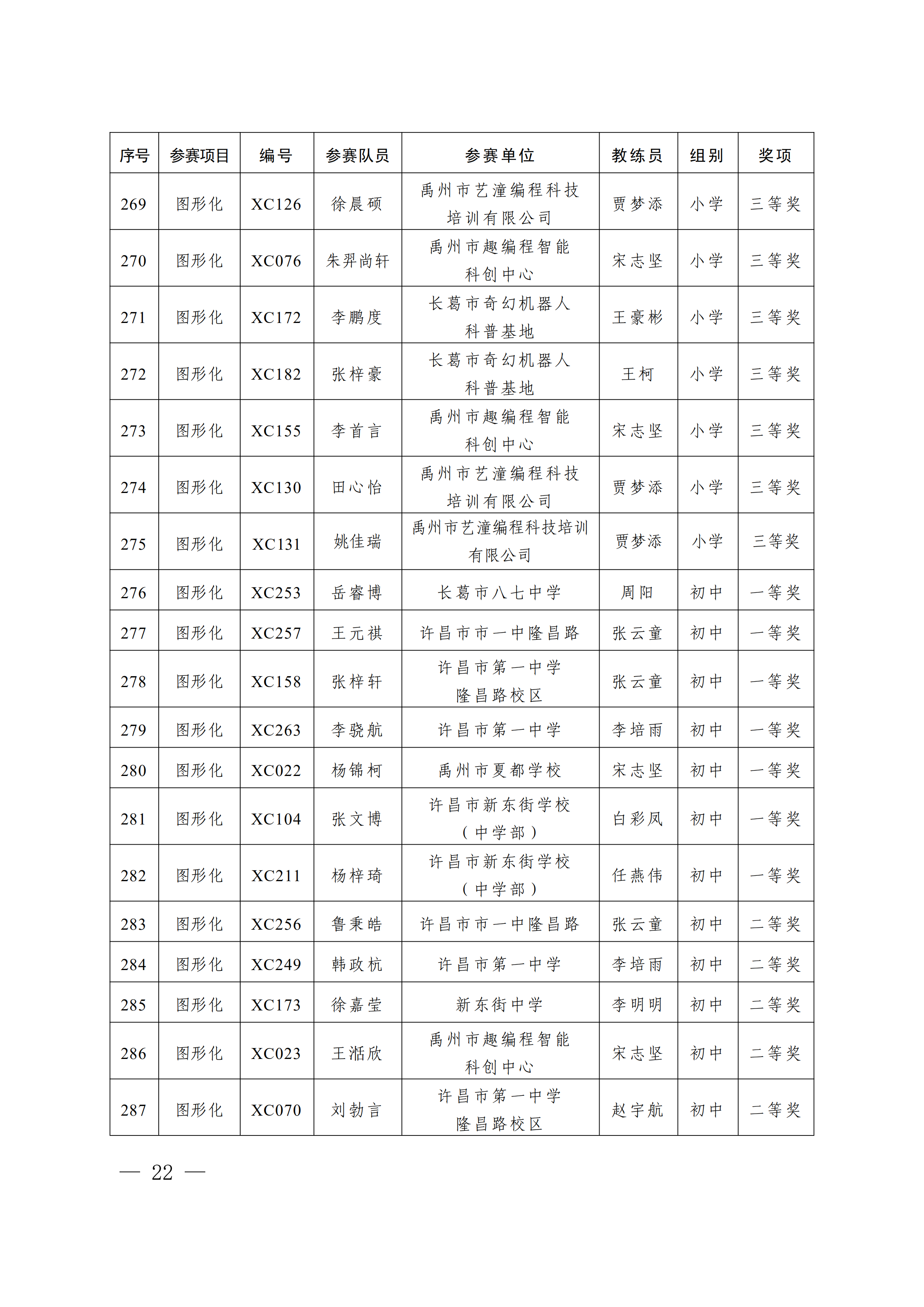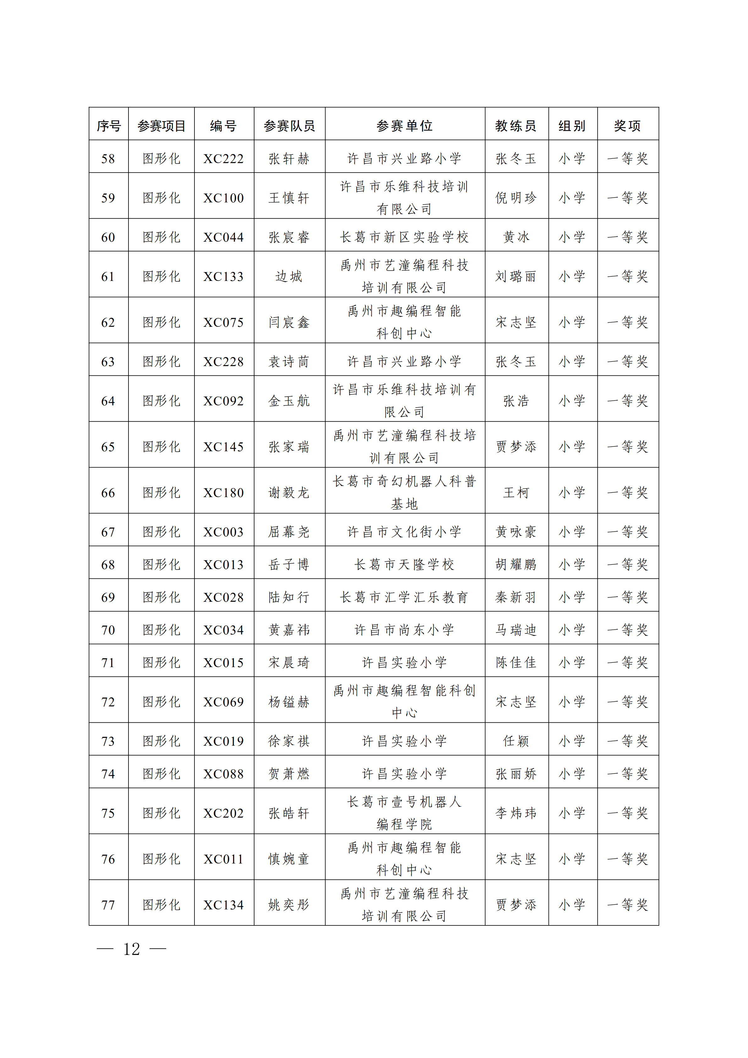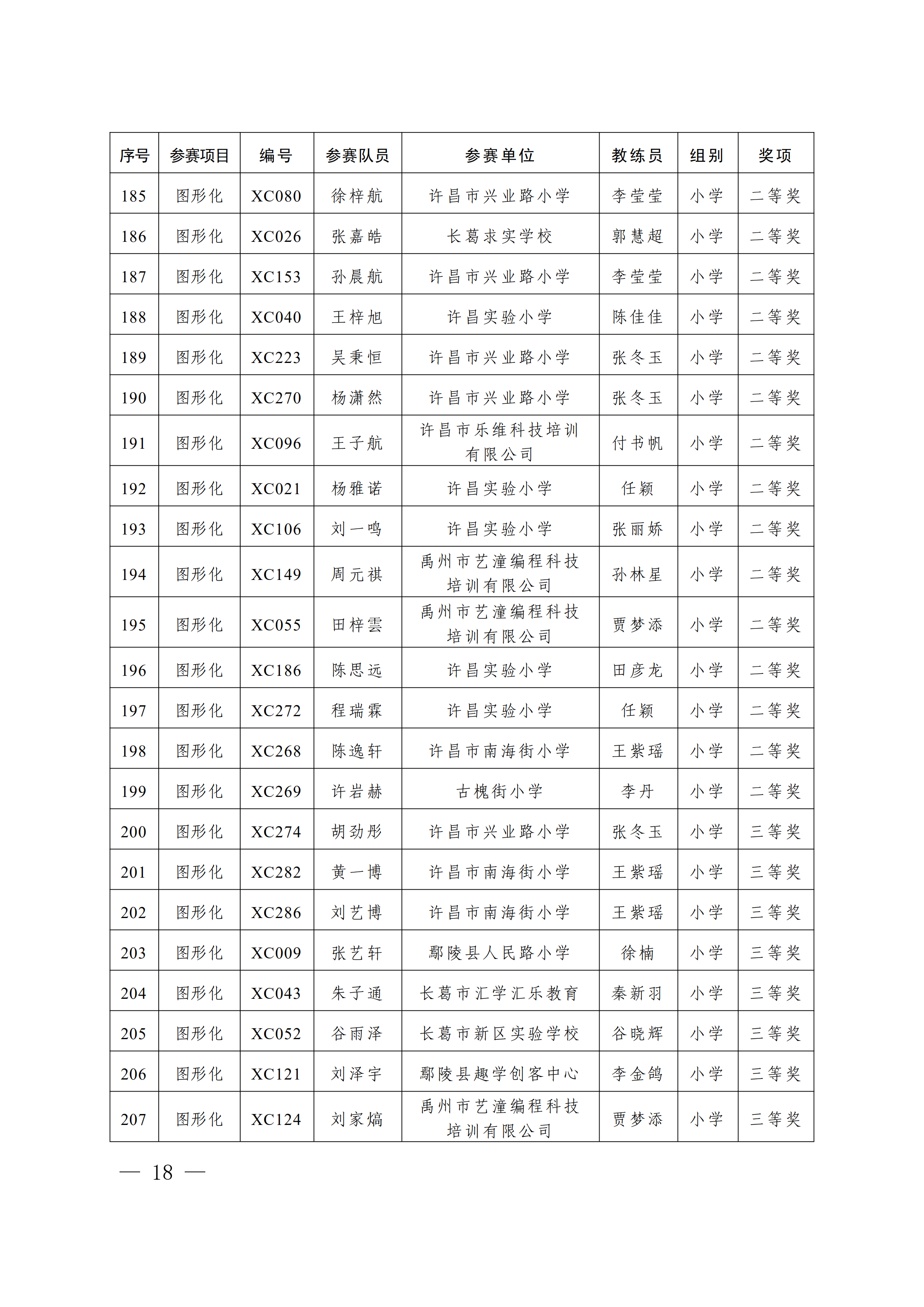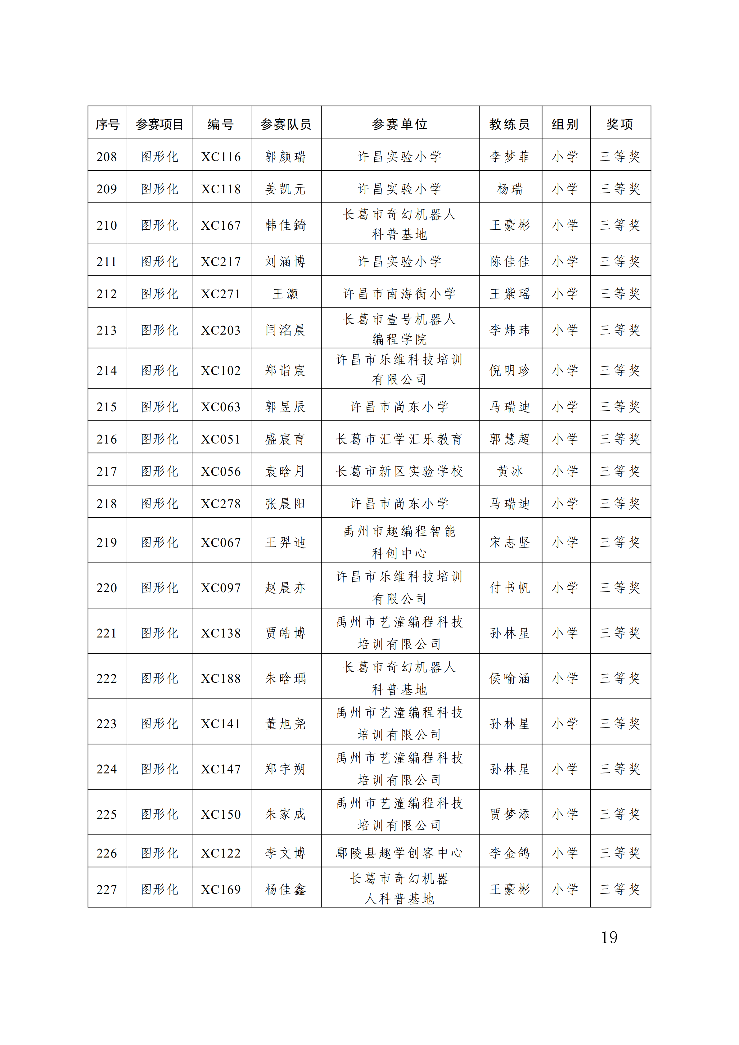 关于公布第4届许昌青少年机器人竞赛暨第23届河南省青少年机器人竞赛许昌分赛获奖名单的通知