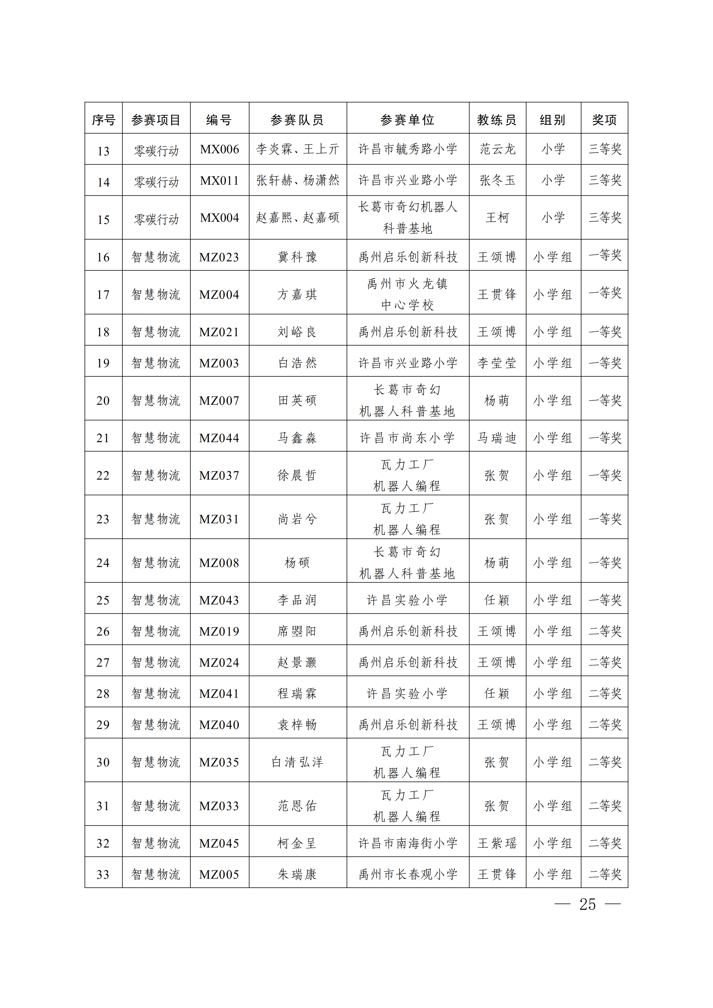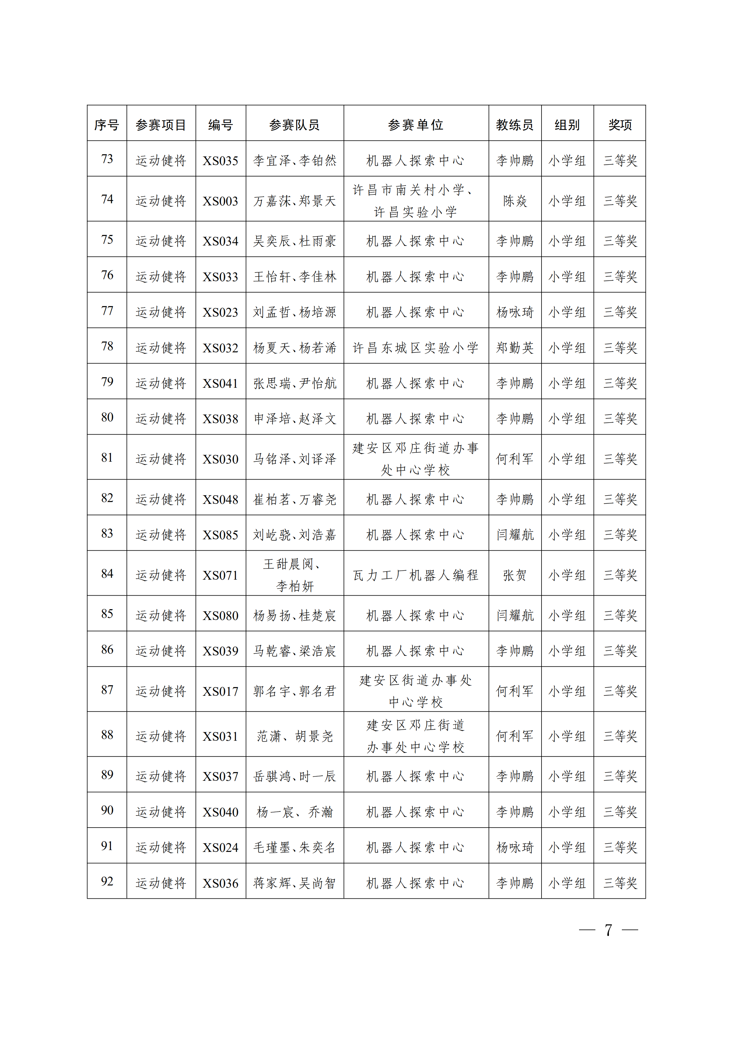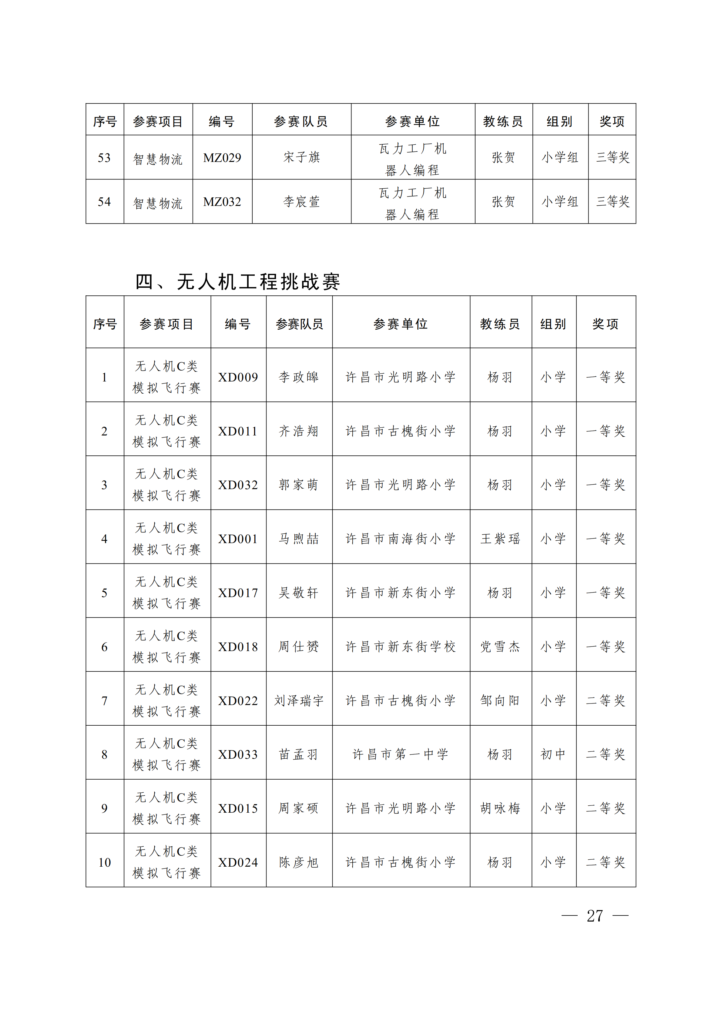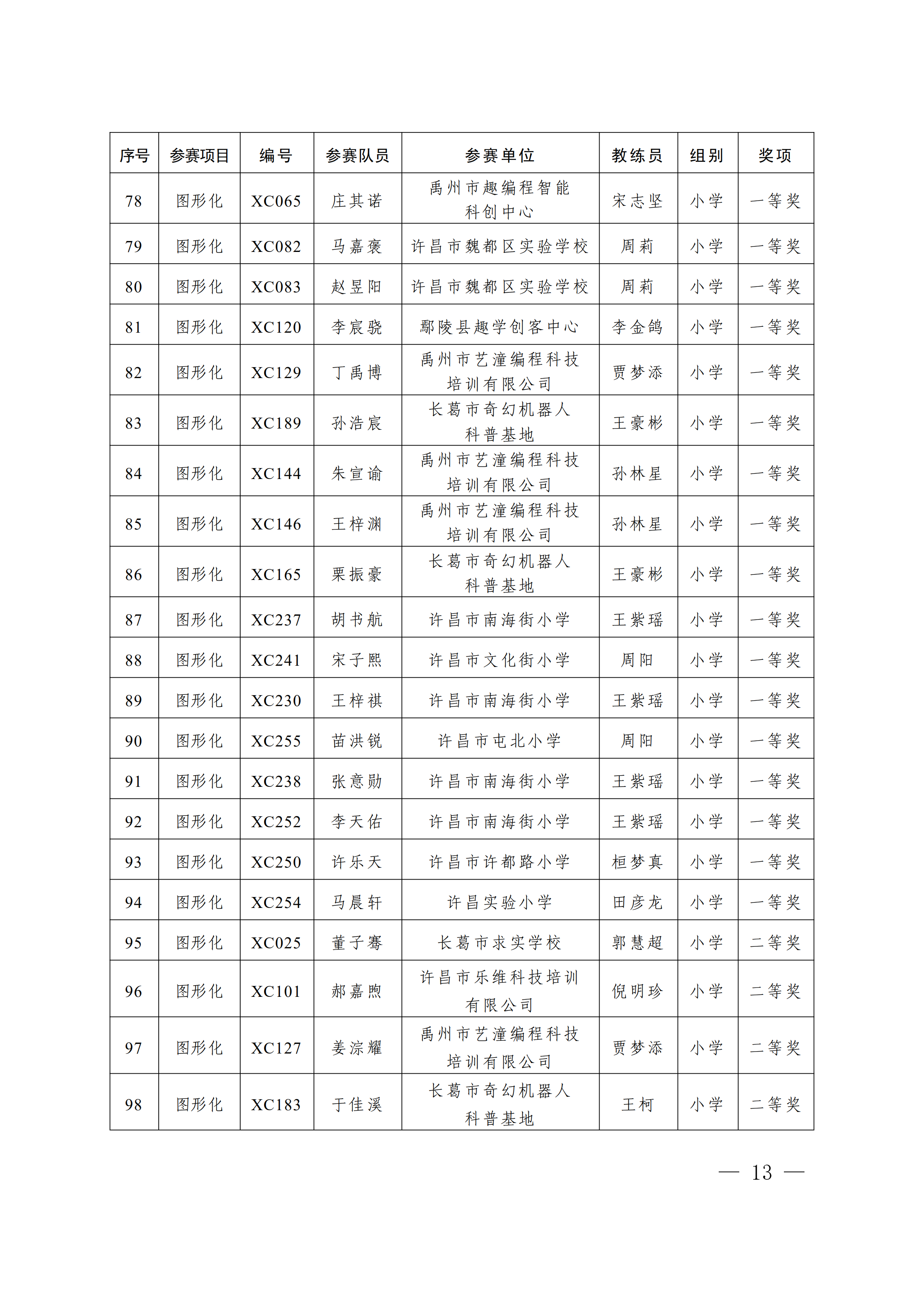 关于公布第4届许昌青少年机器人竞赛暨第23届河南省青少年机器人竞赛许昌分赛获奖名单的通知