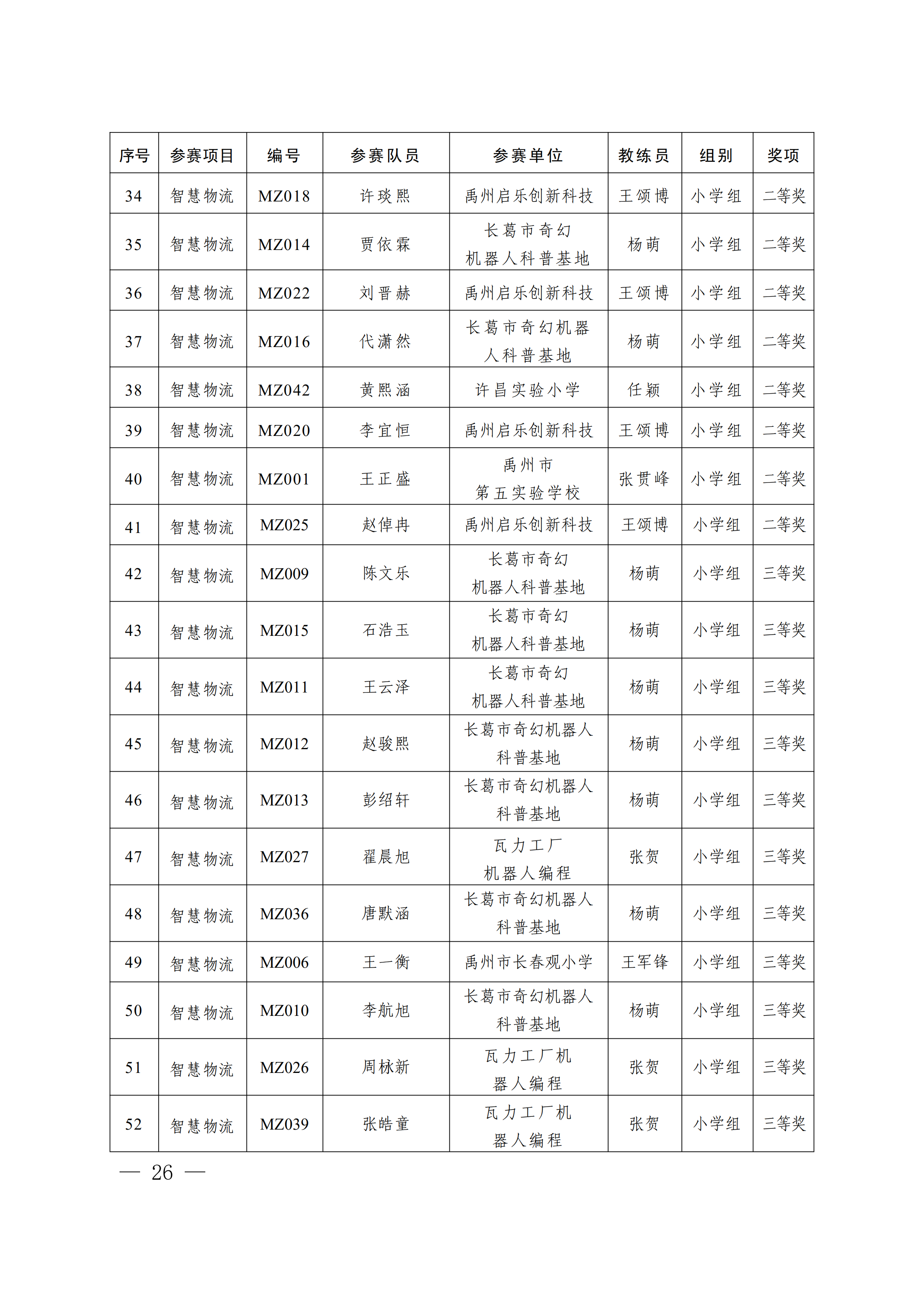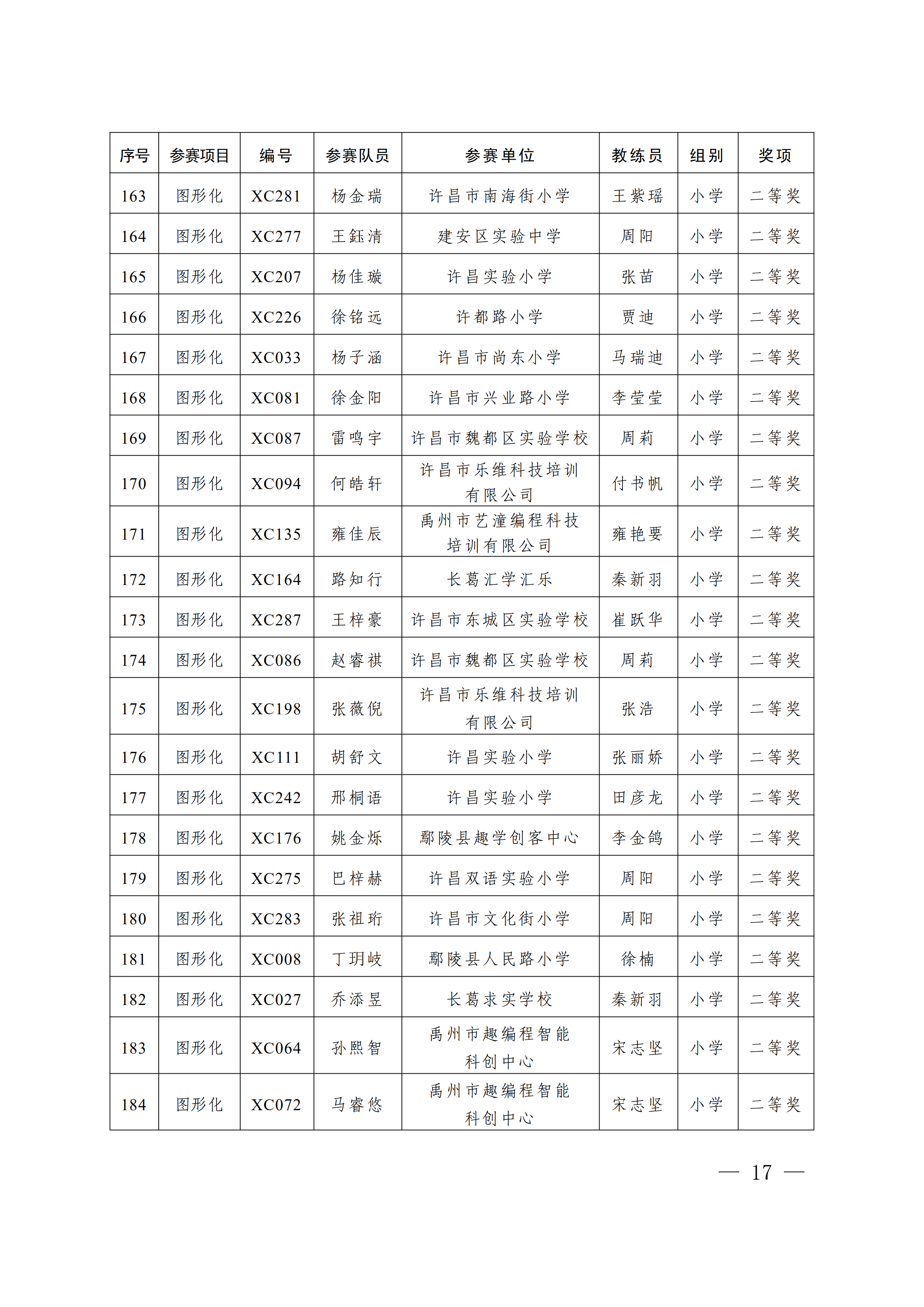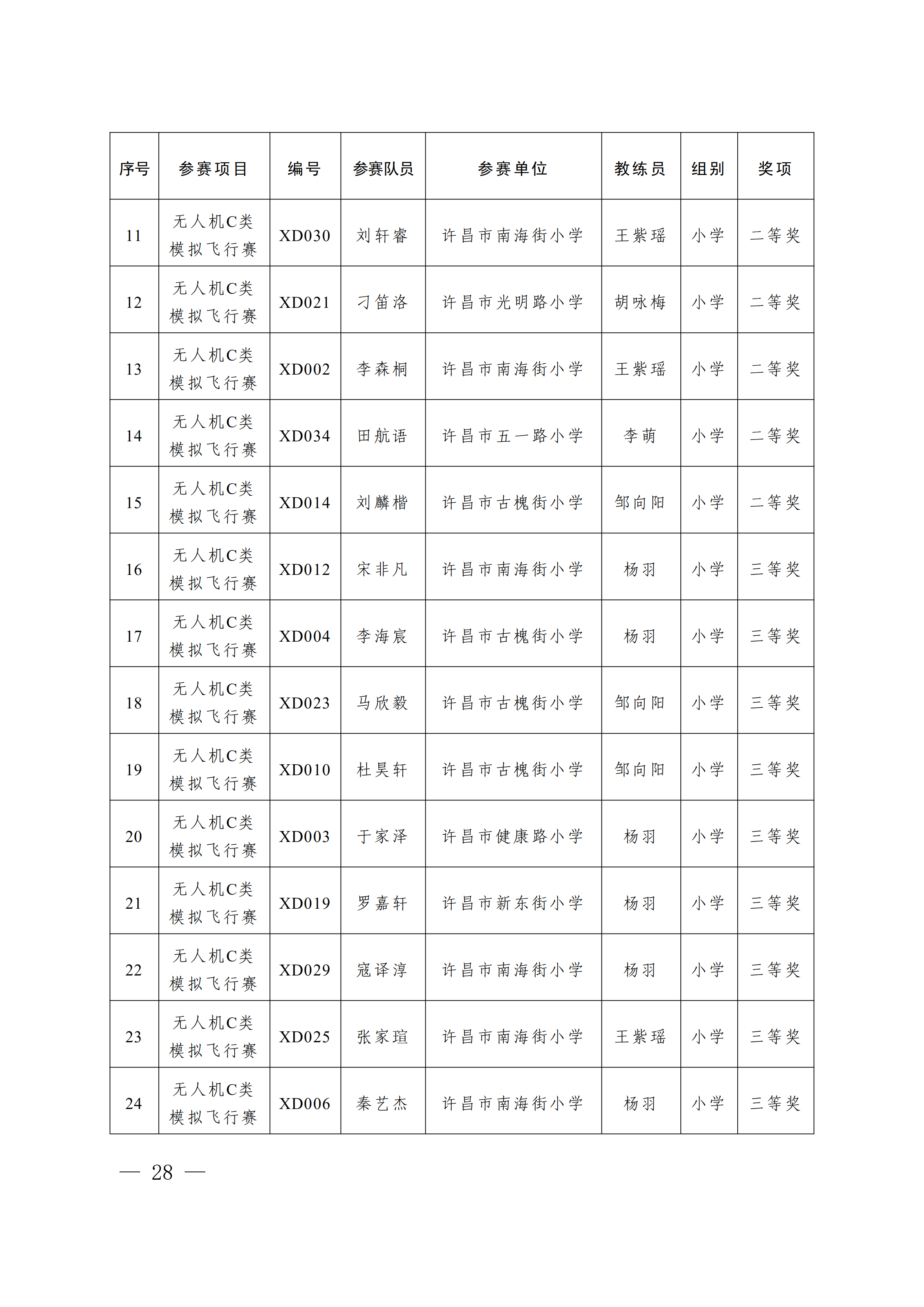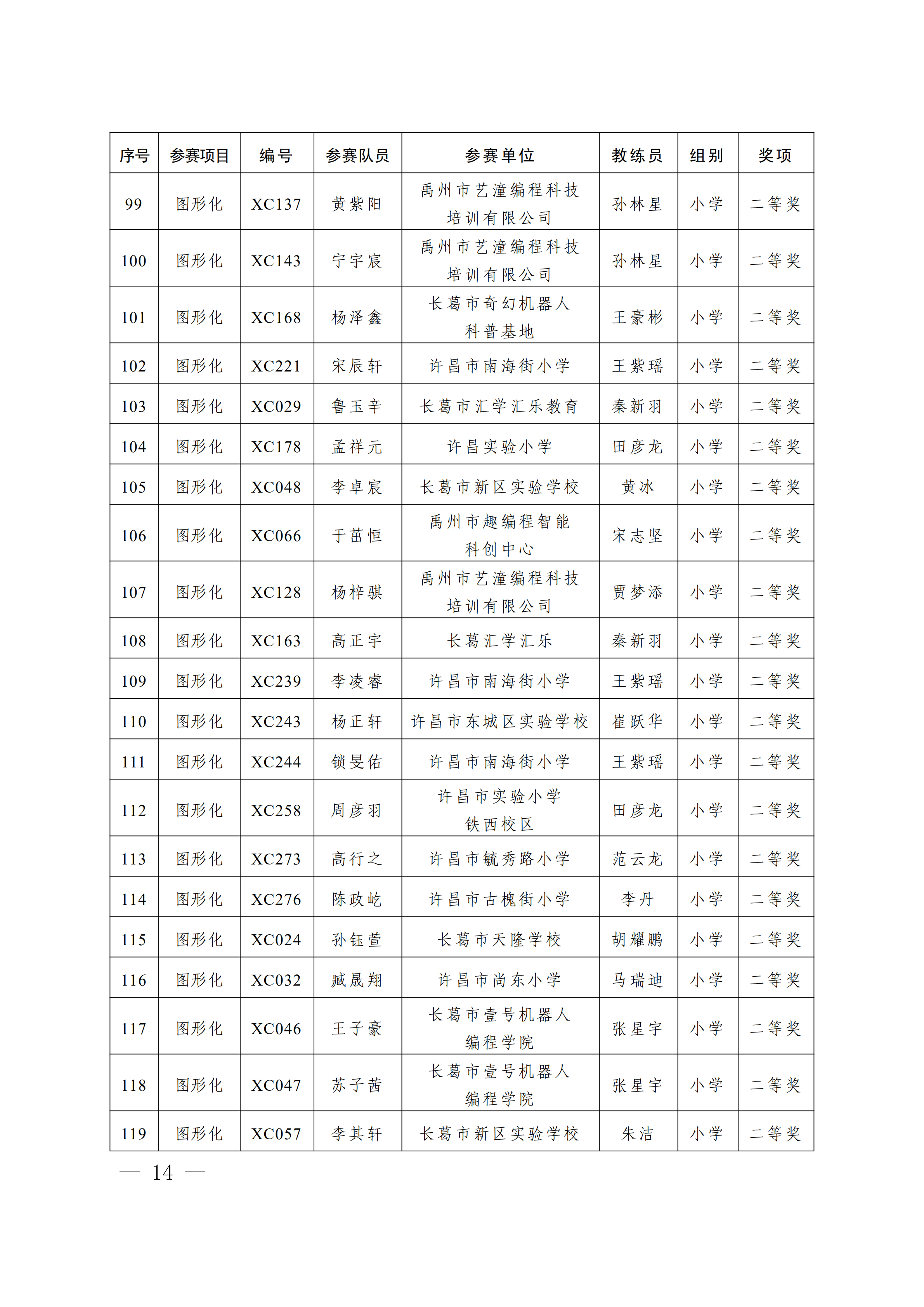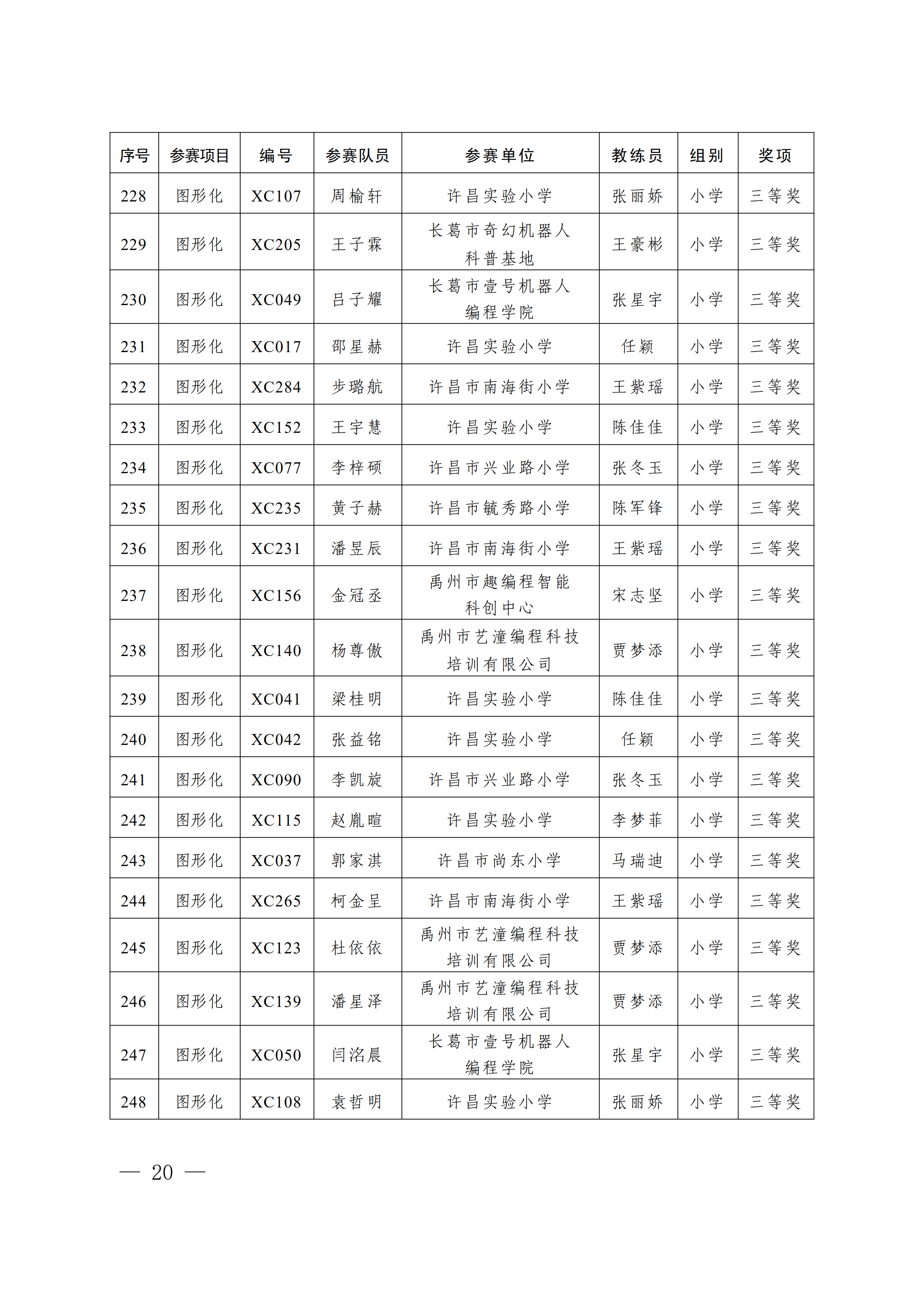 关于公布第4届许昌青少年机器人竞赛暨第23届河南省青少年机器人竞赛许昌分赛获奖名单的通知