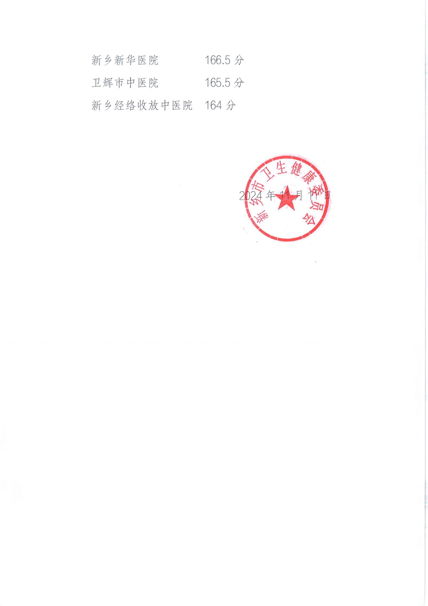 新乡市2024年二级以上中医医院“双核心指标”管理评价结果的通报