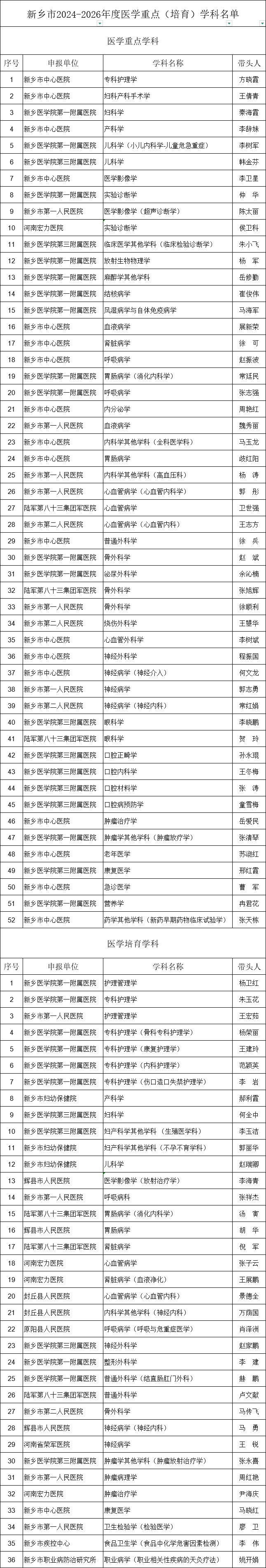 根据《新乡市卫生健康委员会关于印发新乡市医学重点(培育)学科2024-2026年度建设实施方案的通知》精神,在前期资格审查、初步审核基础上,市卫生健康委组织专家对各单位申报材料进行了综合评审,现对学科名单予以公示。公示期为3个工作日,自2025年4月9日至2025年4月11日。公示期间若有异议,请提供书面异议材料并提供有效联系方式。逾期不予受理。