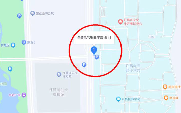 1.许昌电气职业学院教学楼B楼(许昌市魏文路与万通街交叉口西门)