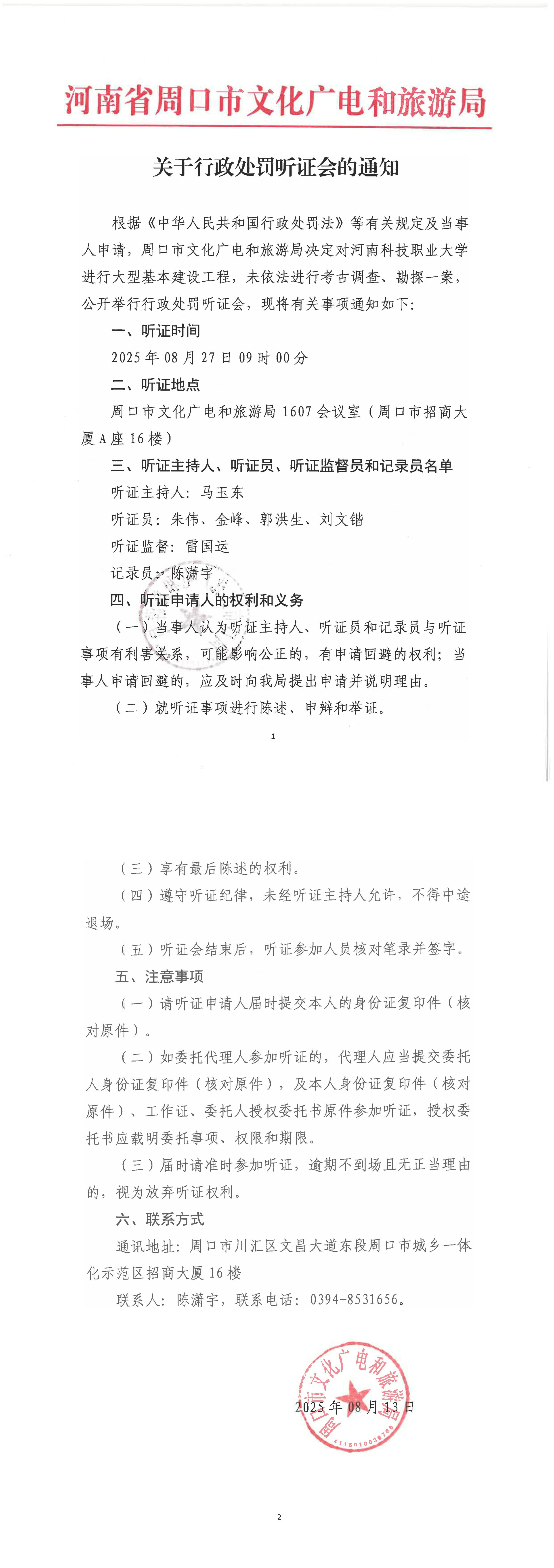 关于行政处罚听证会的通知(二)