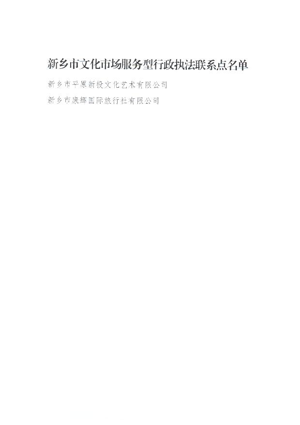 新乡市文化广电和旅游局关于拟选聘服务型行政执法基层联系点和联系员的公示