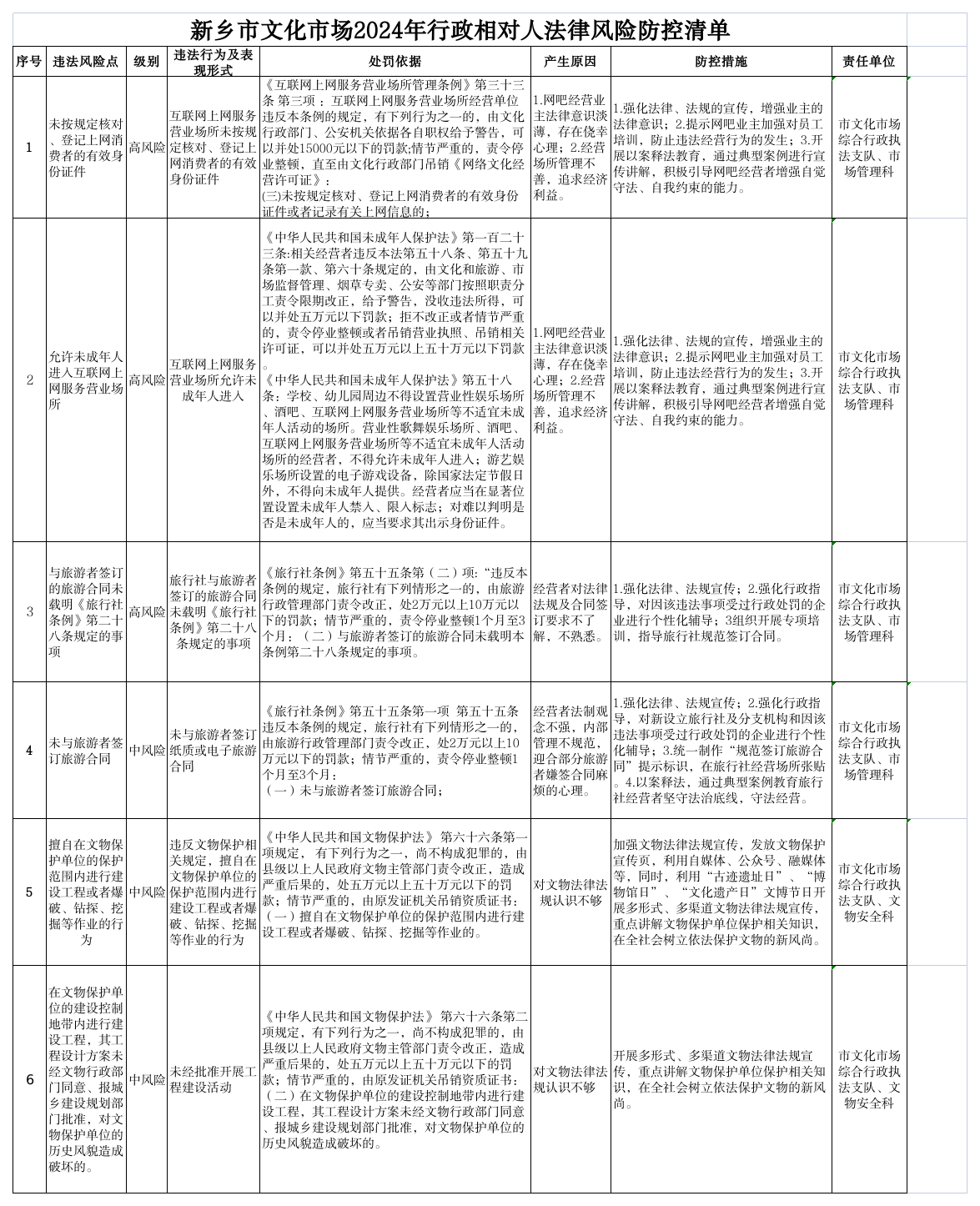 关于公布《新乡市文化市场2024年行政相对人法律风险防控清单》的通知