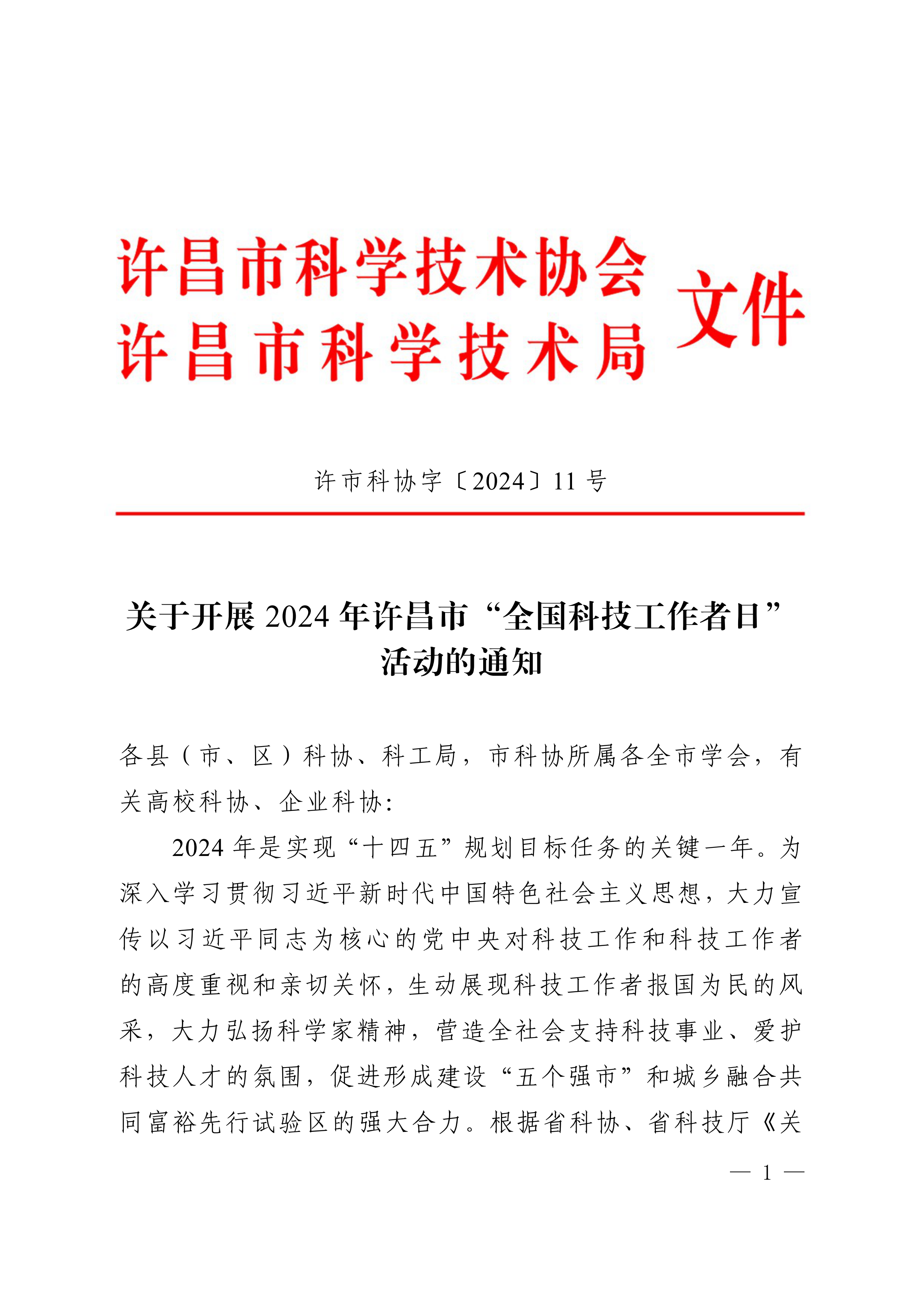 关于开展2024年许昌市“全国科技工作者日”活动的通知
